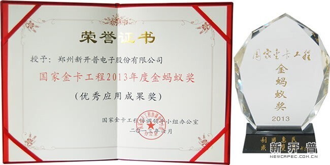 新開普榮獲“國(guó)家金卡工程2013年度金螞蟻獎(jiǎng)”