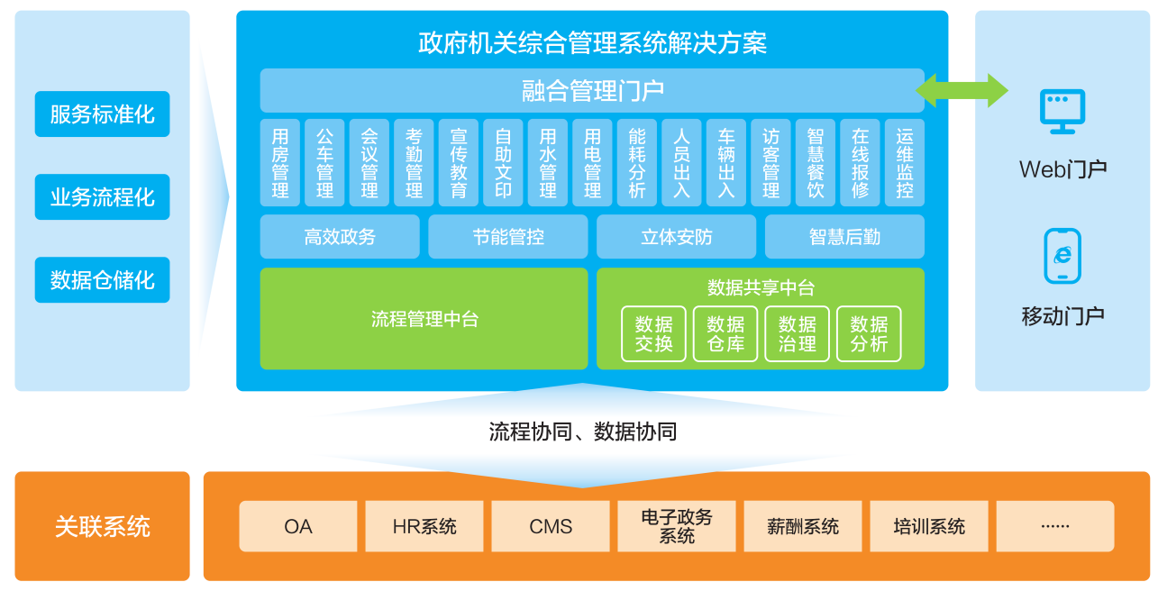 通過政府信息化建設,向標準化信息化聚焦,推動機關運行經(jīng)費、辦公用房、公務用車、公務接待、資產(chǎn)設備、后勤服務等保障資源集約規(guī)范高效使用,進而規(guī)范機關運行、提升服務保障質量、促進節(jié)約型智慧機關建設,為集中統(tǒng)一管理、保障政務服務、發(fā)揮職能作用提供有力支撐。