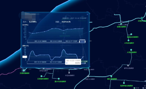 管網(wǎng)監(jiān)測(cè)系統(tǒng)基于管網(wǎng) GIS和 SCADA監(jiān)測(cè)數(shù)據(jù),通過“GIS一張圖”實(shí)時(shí)監(jiān)測(cè)原水、水廠、管網(wǎng)、供水站等主要供水單位的水壓、水量、水質(zhì)狀況,并通過一張圖實(shí)時(shí)監(jiān)測(cè)、分級(jí)管理,并支持遠(yuǎn)程實(shí)時(shí)監(jiān)測(cè)、變化趨勢(shì)分析,并與水量預(yù)測(cè)模型、水質(zhì)預(yù)測(cè)模型相結(jié)合,模擬管網(wǎng)漏損早預(yù)警、早處理,降低管網(wǎng)事故風(fēng)險(xiǎn),提高異常處理效率,保證持續(xù)供水,保障供安全。