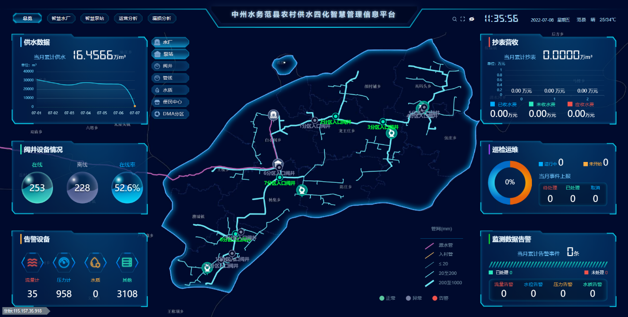 該縣共建設(shè)1座水廠、2座加壓泵站、5座一體化泵站的在線監(jiān)測系統(tǒng)以及112個管網(wǎng)流量和壓力監(jiān)測站、8個管網(wǎng)末梢水質(zhì)監(jiān)測站,對水廠、泵站和管網(wǎng)運(yùn)營情況以及水壓、水質(zhì)等指標(biāo)進(jìn)行在線監(jiān)測,確保供水穩(wěn)定、水質(zhì)穩(wěn)定。配套建設(shè)的12個便民服務(wù)中心,打通了城鄉(xiāng)供水一...