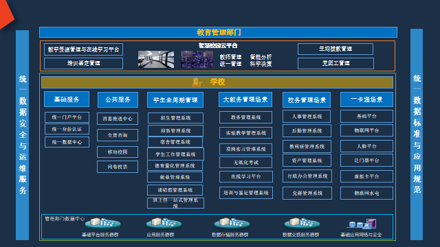 智慧校園云平臺為區(qū)域內(nèi)中等職業(yè)學(xué)校提供統(tǒng)一入口,要實現(xiàn)各學(xué)校業(yè)務(wù)數(shù)據(jù)邏輯上完全獨立,消除現(xiàn)有信息化形成的信息孤島,減少重復(fù)投資,實現(xiàn)統(tǒng)一建設(shè)、統(tǒng)一維護、共享使用,又能夠通過對各學(xué)校的業(yè)務(wù)數(shù)據(jù)進行數(shù)據(jù)挖掘匯總,為上級管理部門提供決策支持,達到一個平臺四個實現(xiàn)的目標(biāo);可以實現(xiàn)管理部門對下屬學(xué)校的全視圖監(jiān)管,實現(xiàn)師生群體身份數(shù)據(jù)的動態(tài)精準驗證,實現(xiàn)學(xué)校自身應(yīng)用及管理的全場景支持,實現(xiàn)政府管理部門對中等職業(yè)教育體系的資金安全管理與精準劃撥。本平臺建設(shè)立足教育業(yè)務(wù)應(yīng)用,實現(xiàn)教育云資源集約化管理與資源均衡分配,滿足教育信息化快速發(fā)展提出的更高需求,一個平臺服務(wù)N個學(xué)校,真正實現(xiàn)智慧化管理。