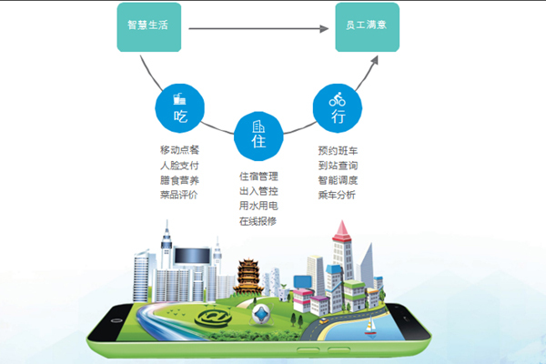 圍繞企業(yè)園區(qū)職工的“吃、住、行”三個(gè)場景展開,通過為員工提供自助化、多樣化的智能終端與應(yīng)用,實(shí)現(xiàn)便捷化、人性化服務(wù);通過對各場景數(shù)據(jù)的統(tǒng)計(jì)與分析,助力企業(yè)精細(xì)化管理;改變傳統(tǒng)企業(yè)排隊(duì)就餐、排隊(duì)充值、人工結(jié)算、人工辦理住宿、漫長等車等現(xiàn)象。用科技賦能,打造智慧園區(qū)美好生活,提升企業(yè)后勤服務(wù)能力和員工生活體驗(yàn)。